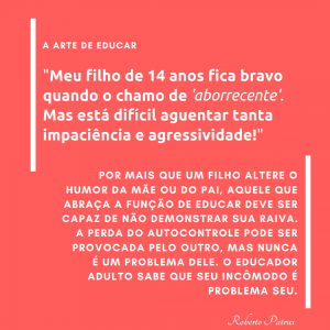 Por mais que um filho altere o humor da mãe ou do pai, aquele que abraça a função de educar deve ser capaz de não